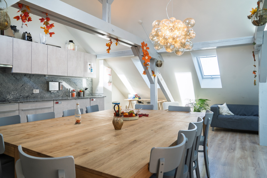 Die Wohngruppe liegt im lebendigen und urbanen Grossbasler Viertel St. Johann, nahe am Puls der Stadt und doch ruhig gelegen. Im 5-stöckigen Stadthaus stehen gesamthaft 12 Einzelzimmer zur Verfügung. Die Gemeinschaftsräume - einem grossen Wohn- und Essbereich, ein Atelier, ein Wohnzimmer sowie eine kleine Fitnessecke - bieten sich an für diverse Freizeitbeschäftigungen. Wir legen Wert auf eine wohnliche und einladende Atmosphäre.